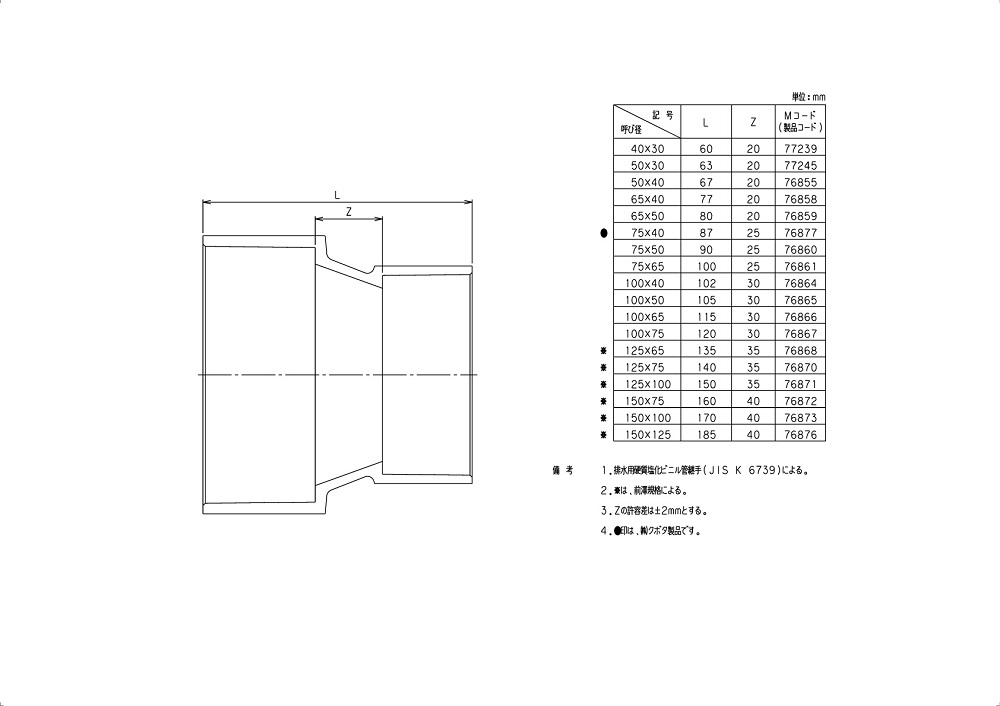 塩ビ管用排水継手 VU/DV IN(インクリーザー)