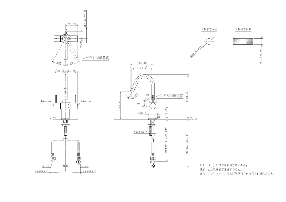 ●取付穴径:35〜37mm 厚:5〜35mm