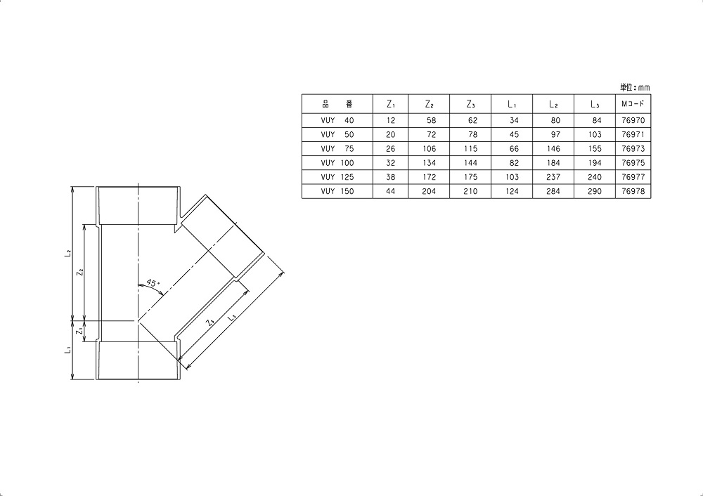 塩ビ管用排水継手 VU/DV 45度Y