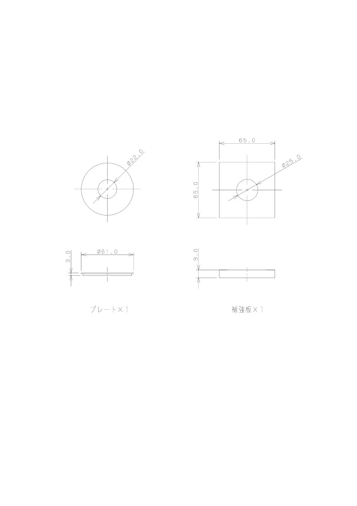 ●穴径30〜38mmに単水栓を取り付けるためのプレートと補強板です。