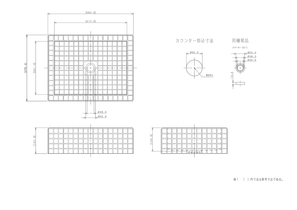※水栓金具、排水金具(排水トラップ)、止水栓は含まれていません。