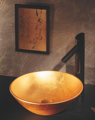 上質な輝きと光沢をもった「箔」に魅せられ、器と水栓金具に箔を施しました。