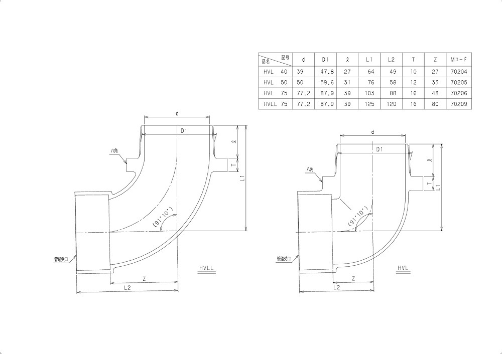 塩ビ管用特殊継手 DV-HVL(排水用バルブエルボ)