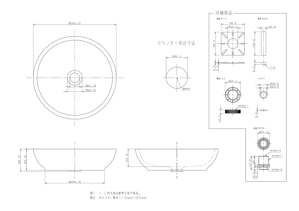 ※水栓金具、排水金具(排水トラップ)、止水栓は含まれていません。