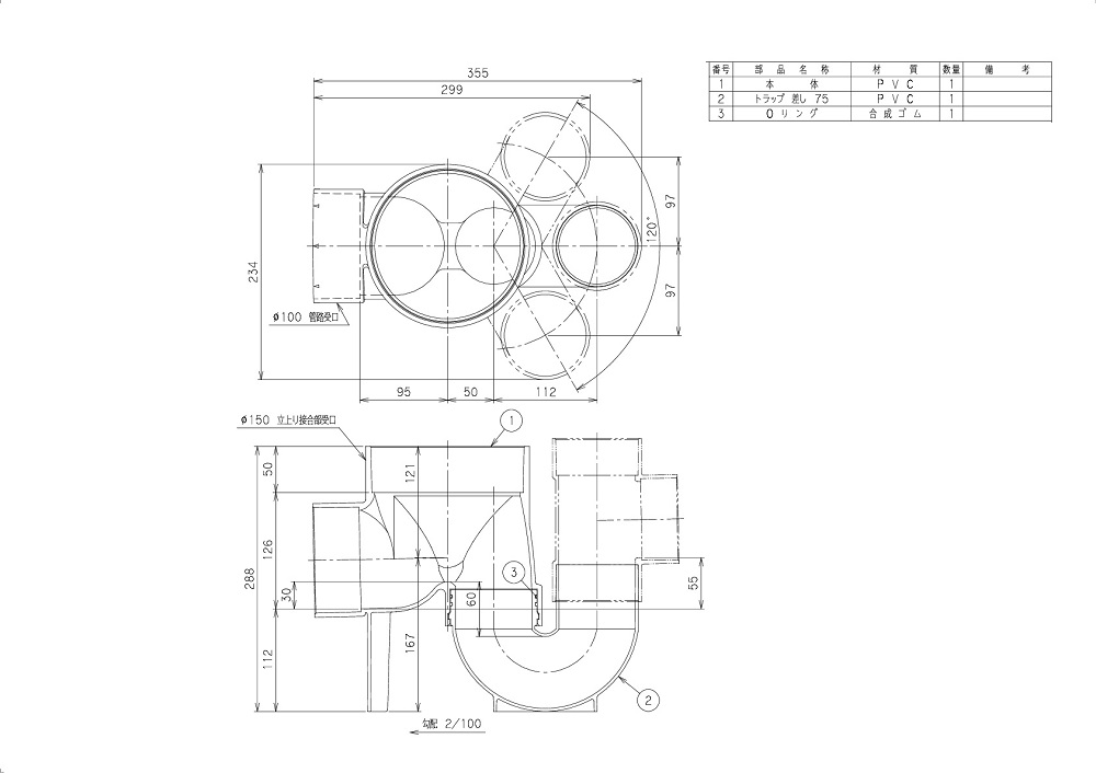 ●管路タイプ:主管100 トラップ径75(差口)蓋径150