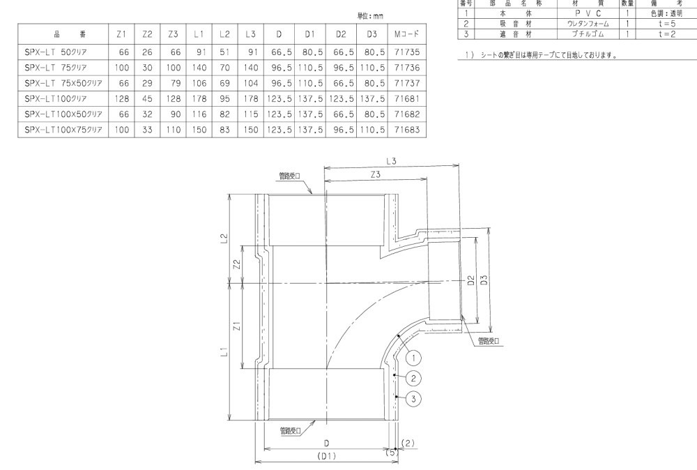 遮音継手 90°大曲りY SPX