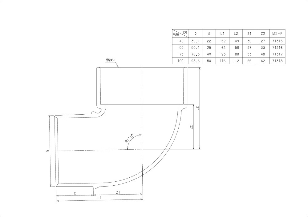 塩ビ管用特殊継手 VP90KLY(90度片受エルボYタイプ)