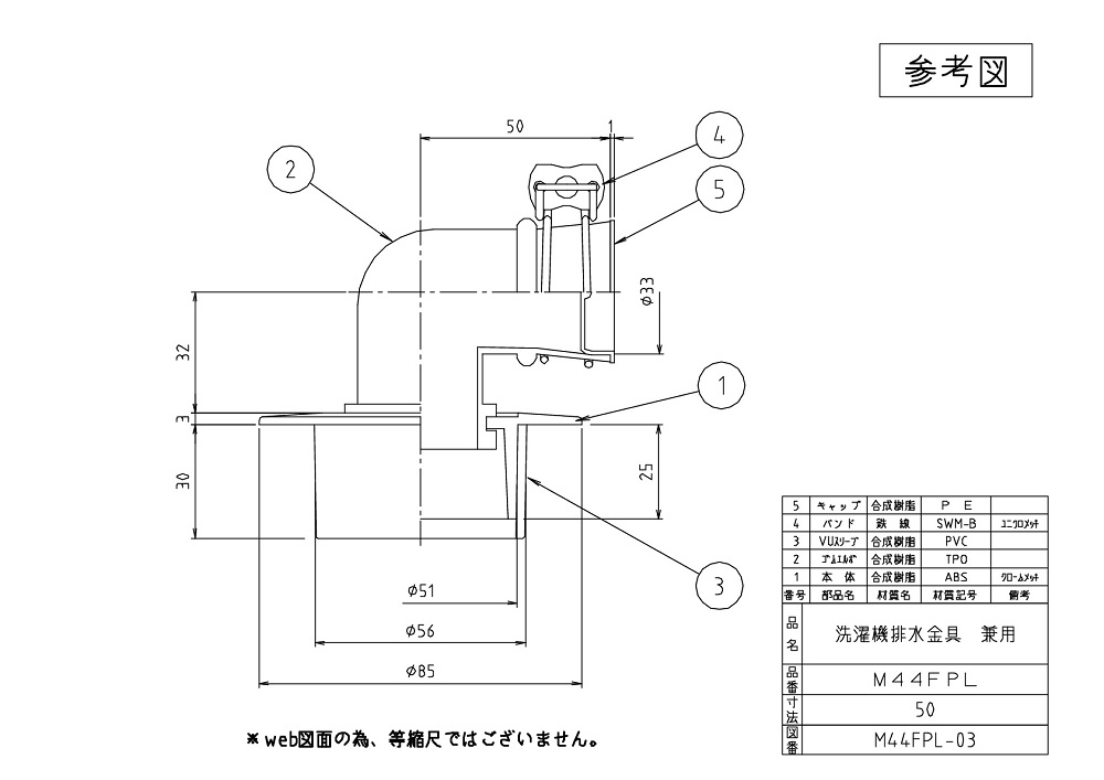 洗濯機排水金具 クロームメッキ