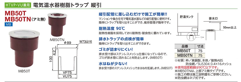 電気温水器樹脂トラップ 縦引アミ付き