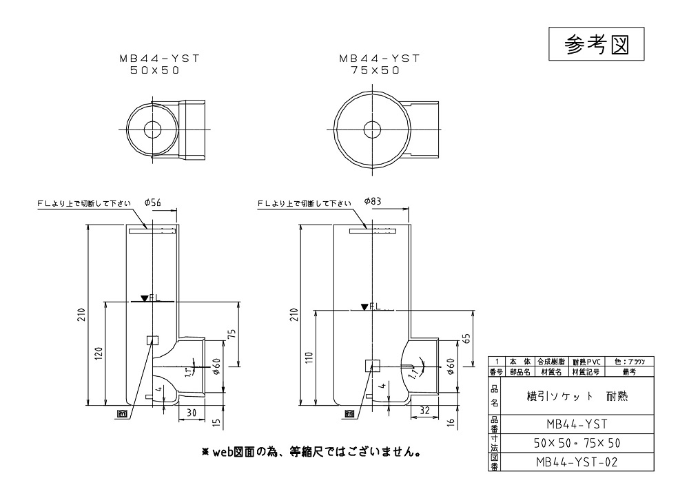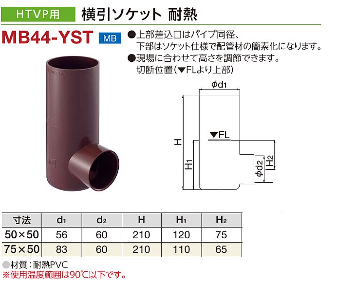 ●上部差込口はパイプ同径、下部はソケット仕様で配管材の簡略化になります。