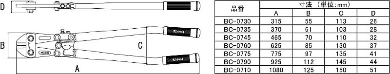 ※BC-0730は可鍛鋳鉄ハンドル(フレームレスタイプ)他サイズはスチールパイプハンドルを使用