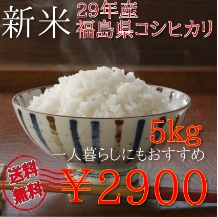新米 福島県産 1等米コシヒカリ 平成29年産 精米 5kg 送料無料